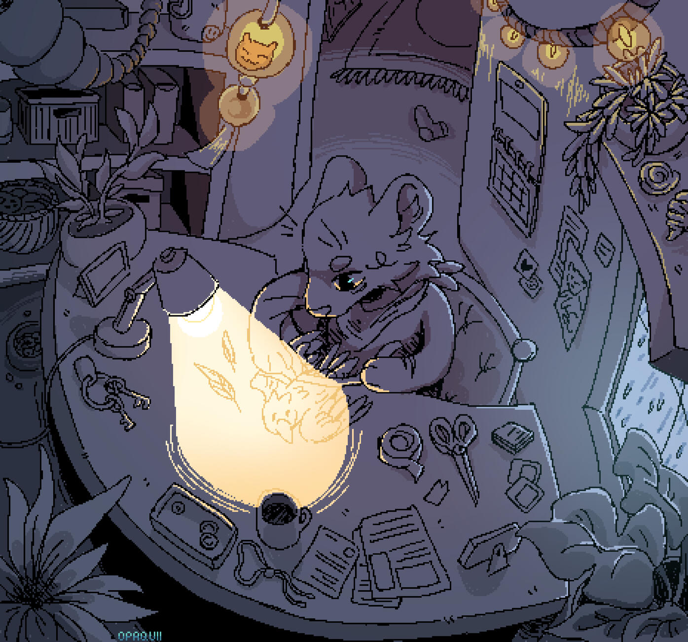 A deserted shopping area is where Spire lives. A hole in the wall protected by barbed wire leads to a couple of rooms that serve as their living space. One is their bedroom, a single window illuminates the mat on the floor and a box of crystals that they collect. Spire prefers not to own much, but this room has the most objects and keepsakes, like drawings, photos and some books.Spire once had a mentor when they were a young werm. Atlantic looked over them for a few months, finally leaving when he was sure Spire could take care of themselves. Years passed, and unfortunately, Spire no longer remembered what their mentor looked like... just streaks of sea foam green blur their memories.